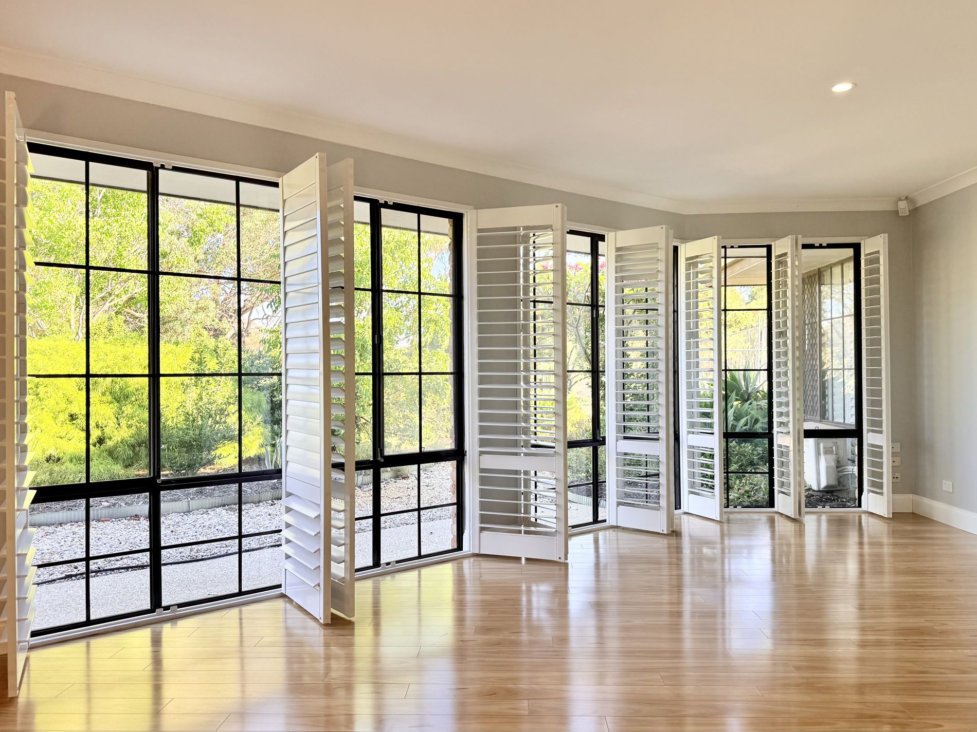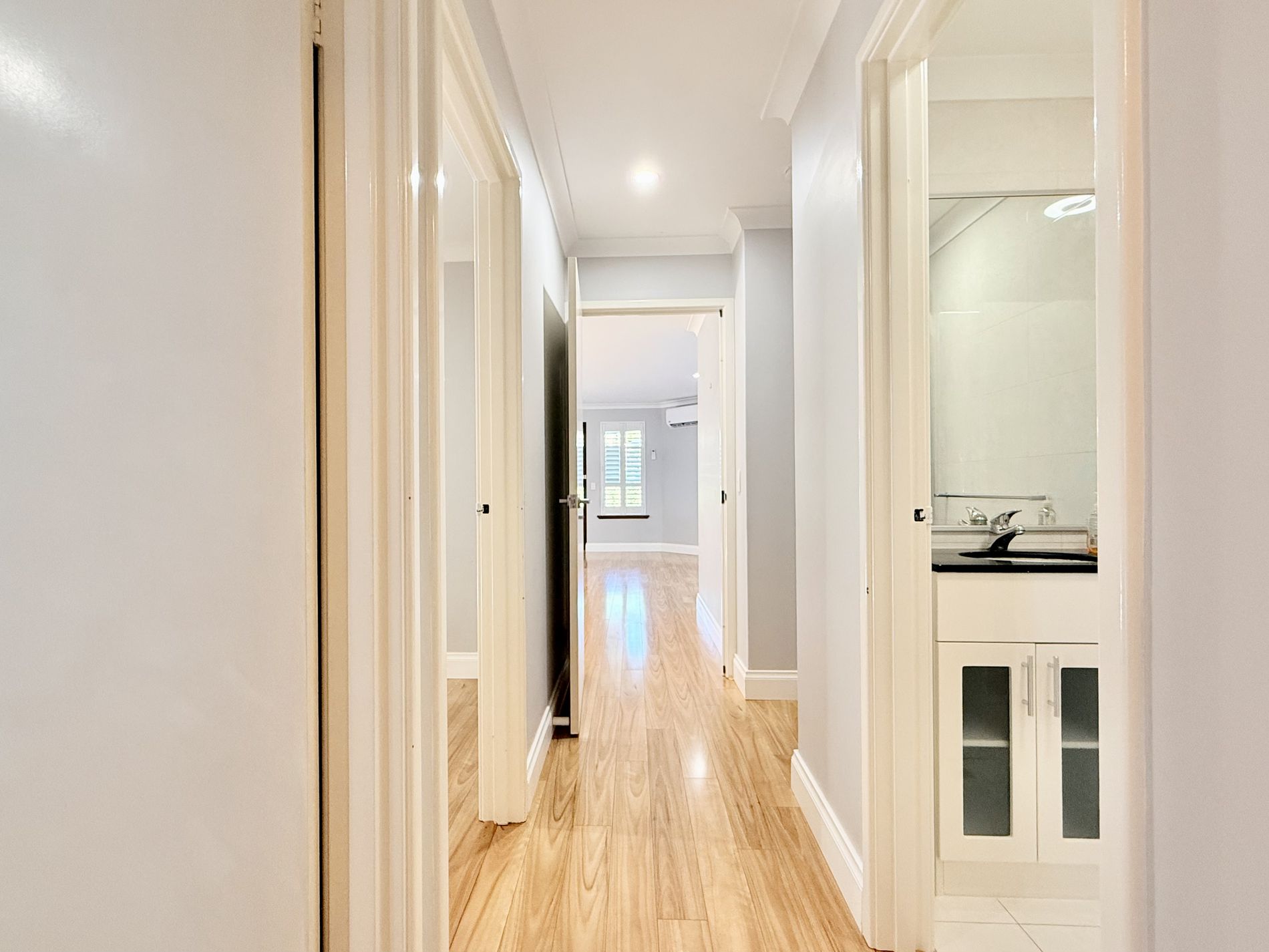 With ample parking, lush green lawns, private gardens, and courtyards surrounding the home, the exterior is just as inviting as the interior. Inside, the home has been fully modernised with all the conveniences you’d expect, plus a touch of luxury—white plantation shutters, pendant lighting over the solid stone kitchen island, and elegant feature lighting in the master suite. This home is sure to impress.