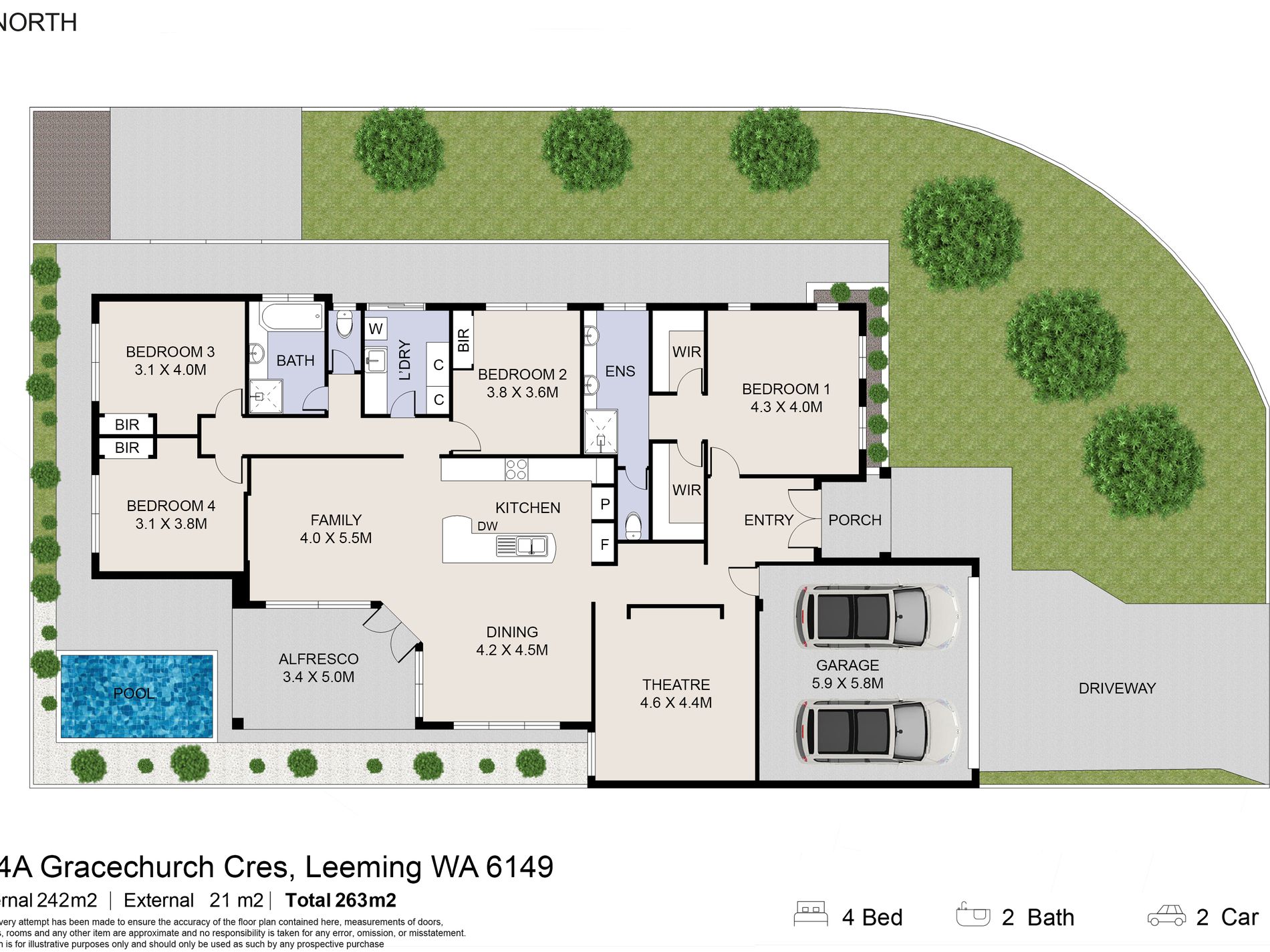 Radiating style and substance throughout, this 4 bedroom, 2 bathroom Ross North home, built in 2009, has been meticulously crafted for modern, low-maintenance living. Boasting a functional floor plan that will undoubtedly keep everybody happy in more ways than one, this stunning residence combines sleek finishes with thoughtful design, offering a move-in ready lifestyle that blends comfort, convenience and undeniable curb appeal. Situated in one of Leeming’s most convenient pockets, you’re just moments from Murdoch University, excellent schools, Fiona Stanley and St John of God Hospitals, Kwinana Freeway, Roe Highway, South Street Station, public transport, and shopping centres—all just 15 minutes from the Perth CBD.