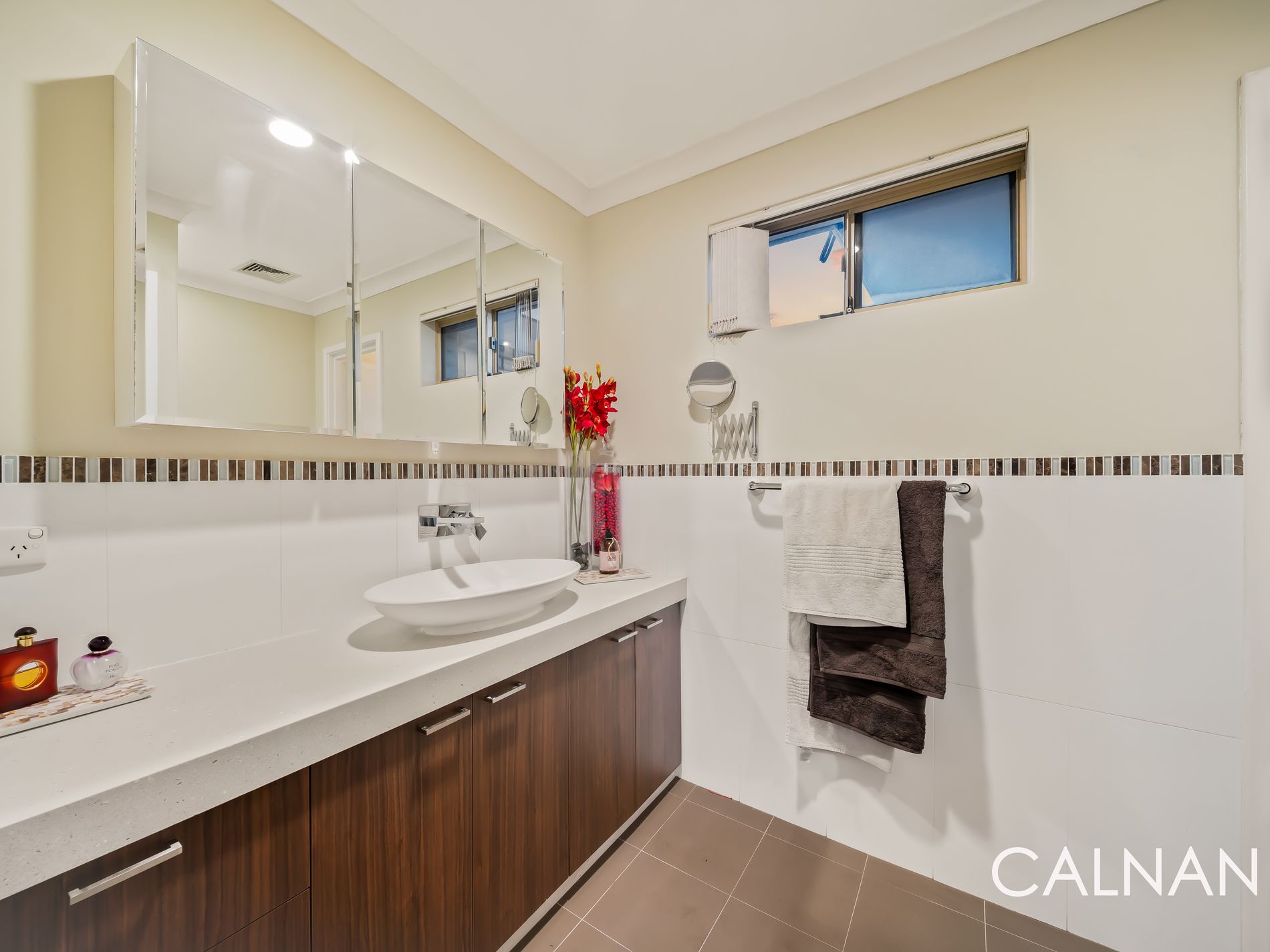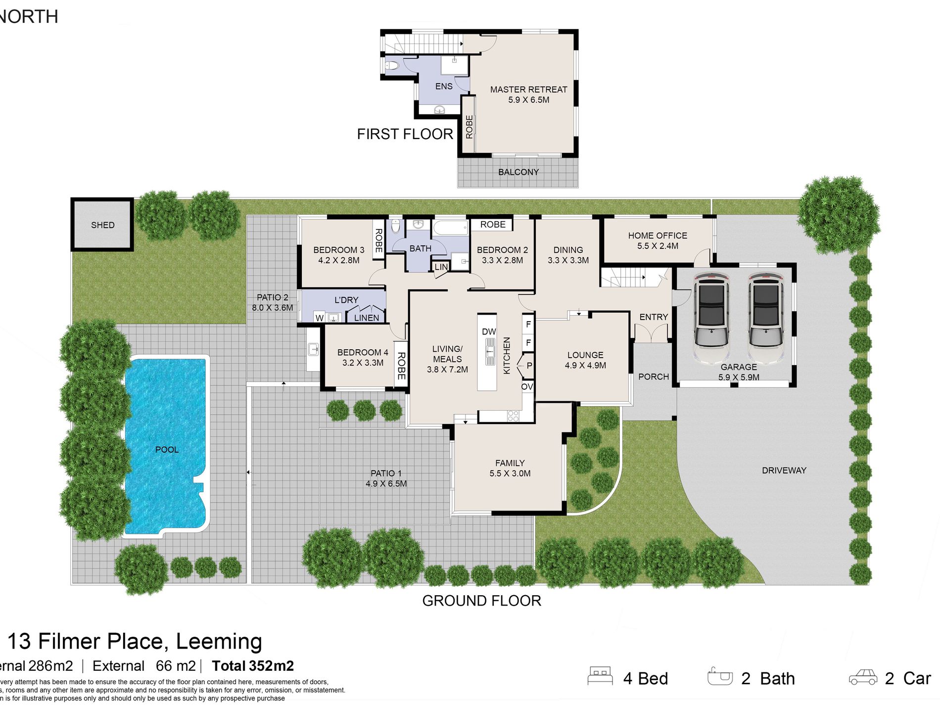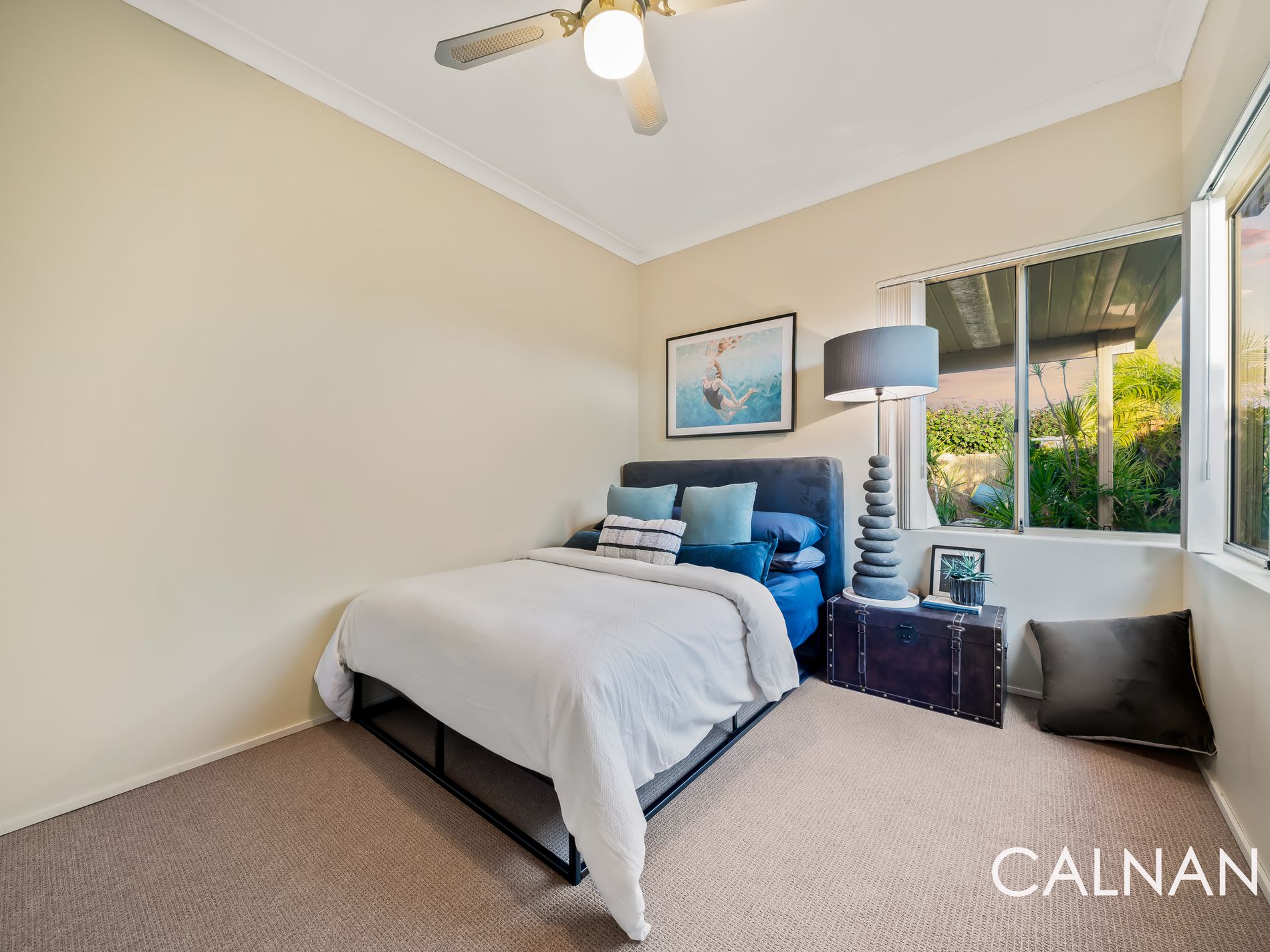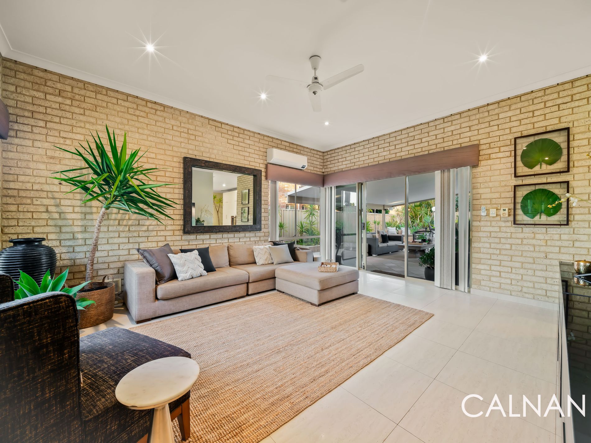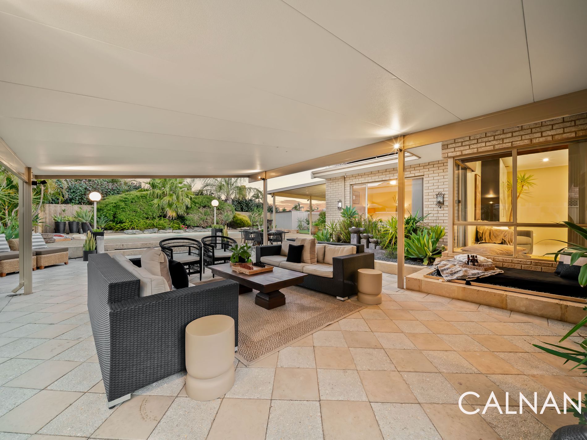 And it’s all centred around a shimmering below-ground 60,000L salt-water swimming pool amidst the swaying palm trees within the sprawling backyard, where a delightful poolside patio with a double wash trough is complemented by even more space around the pool for relaxing and unwinding, lawn and an insulated outdoor alfresco-entertaining area – daybed and all. Also at the rear are a connecting courtyard and a corner garden shed, for good measure.