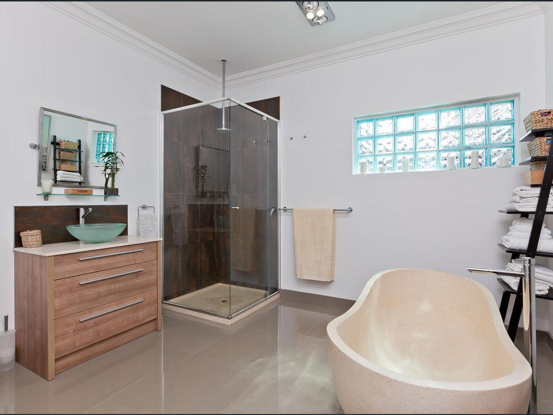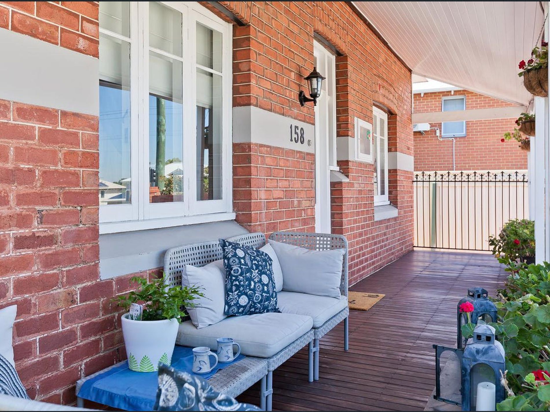The original portion of the home offers four generously sized bedrooms, rich with character including jarrah floorboards, high skirting boards, and wood-burning fireplaces. The main bathroom is a standout, complete with a striking freestanding bath.